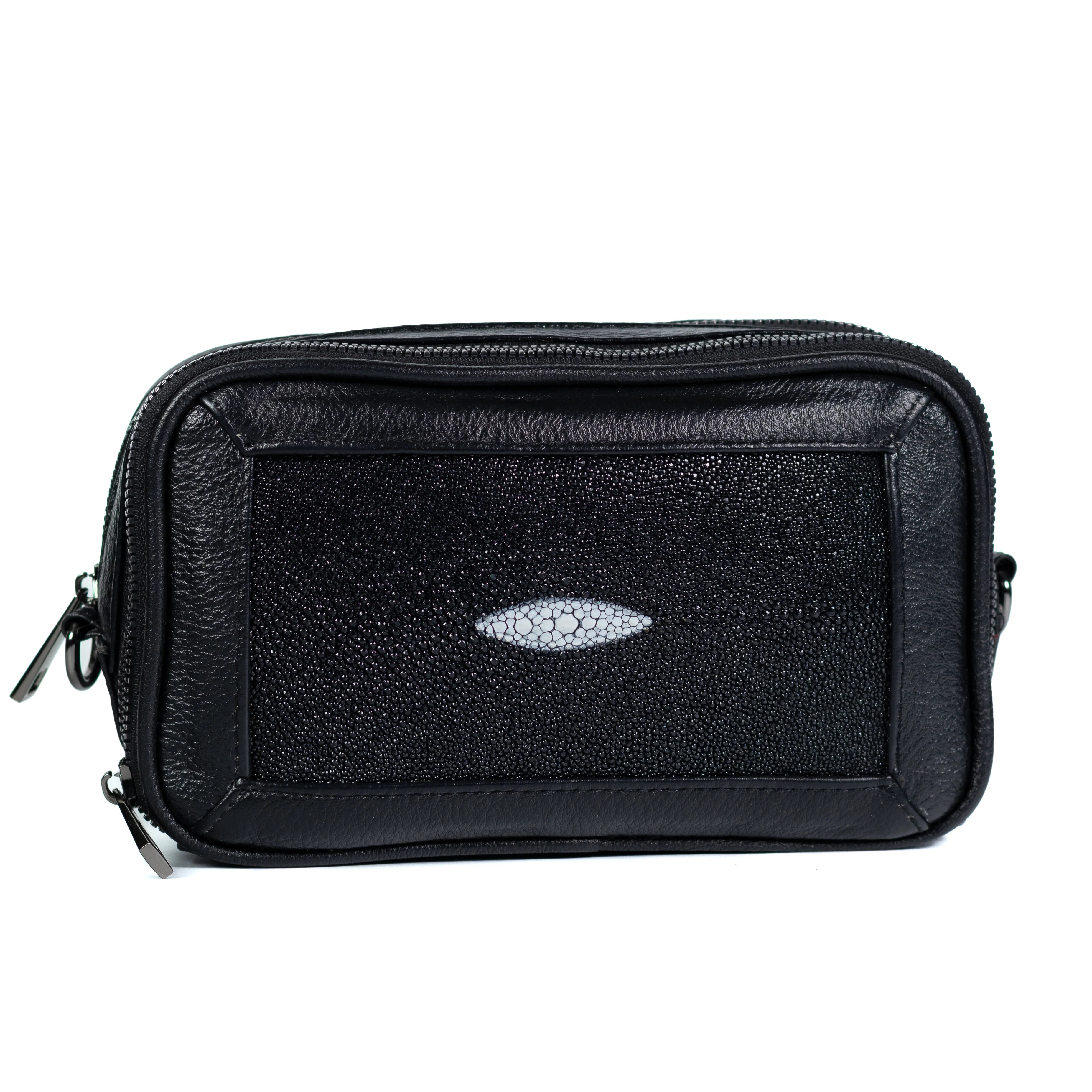 Materiales: Cuerpo en piel bovina. Cara principal en Piel de mantarraya Rey.