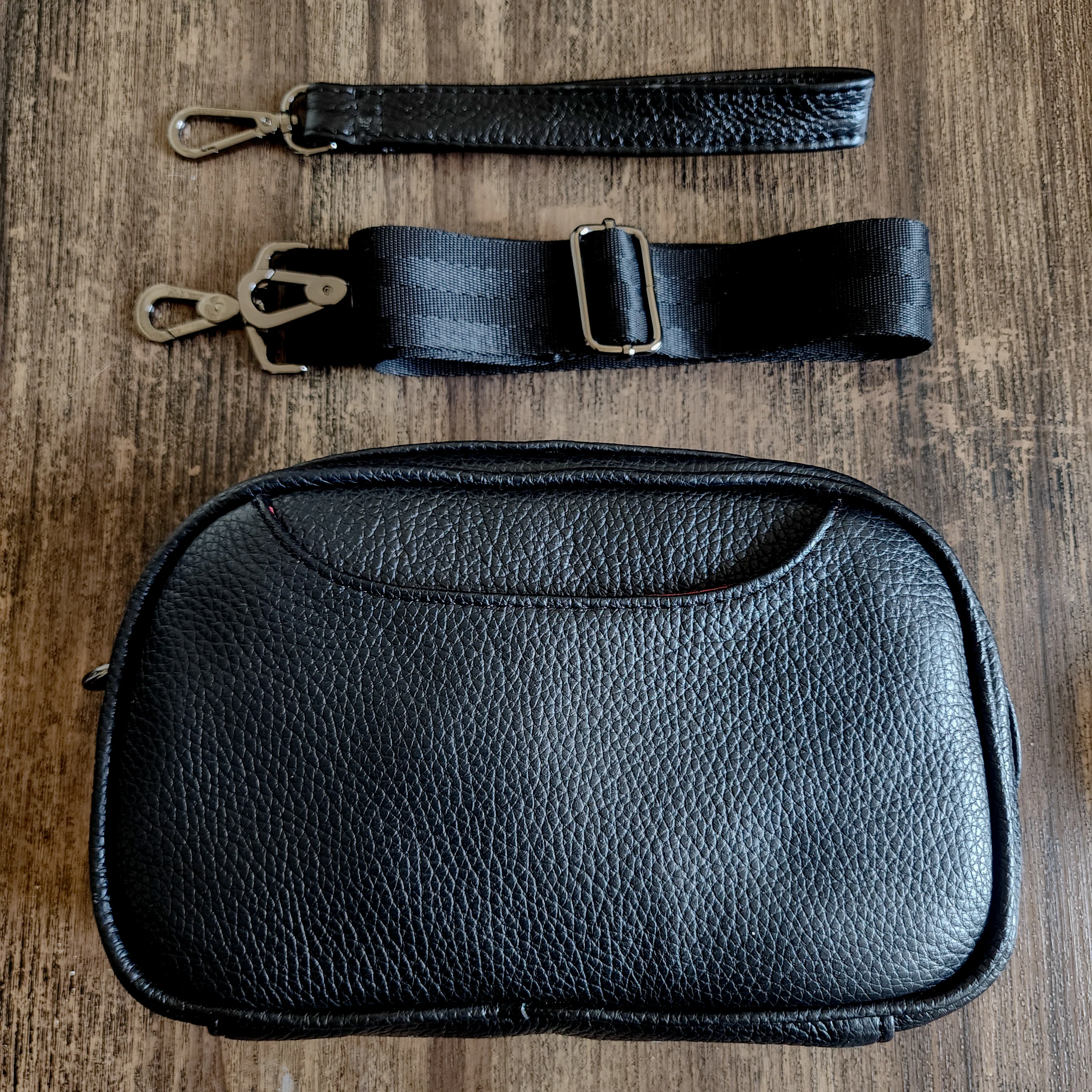 - Incluye dos correas de piel. para cargan en mano y para colgar en hombro.